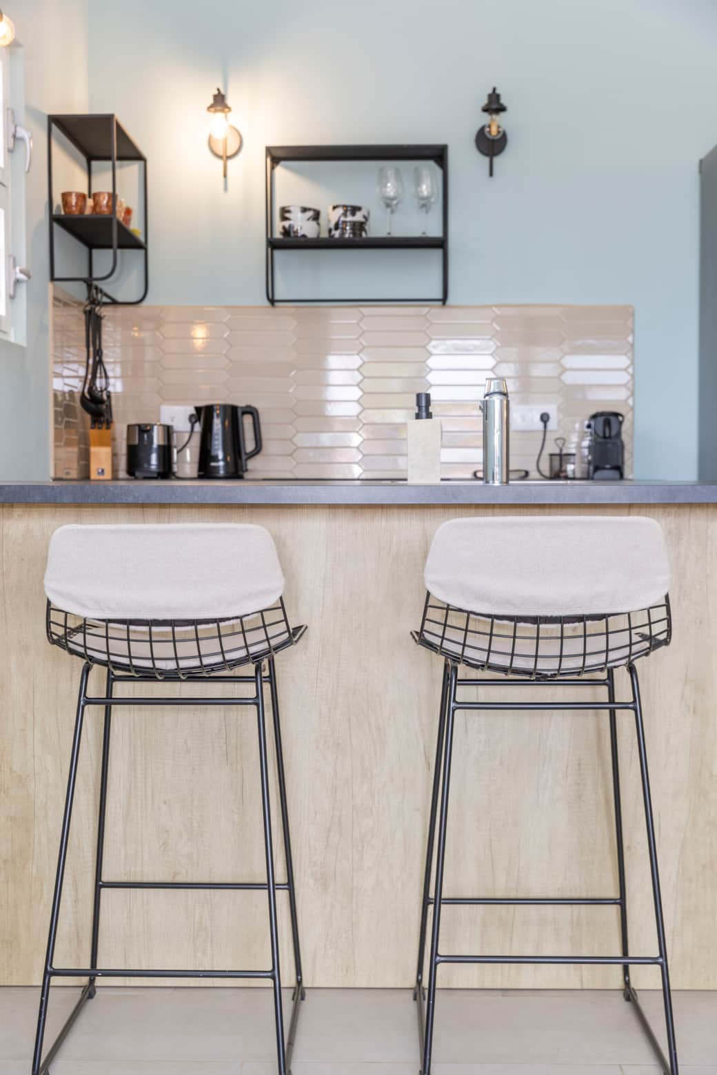 Kinderstoel, Koffiezetapparaat, Kookgerei, Afwasmachine, Fornuis, Magnetron, Oven, Koelkast, Stofzuiger
